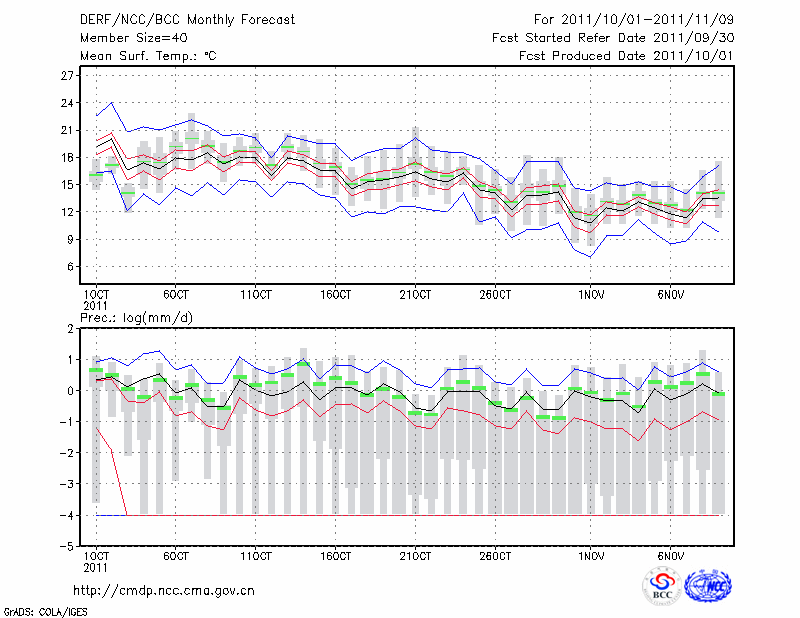 信 阳 (LAT:32.13 LON:114.05) 2011-10-01        预测