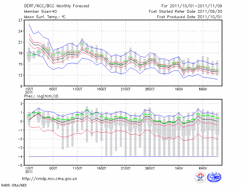 恩 施 (LAT:30.28 LON:109.47) 2011-10-01        预测
