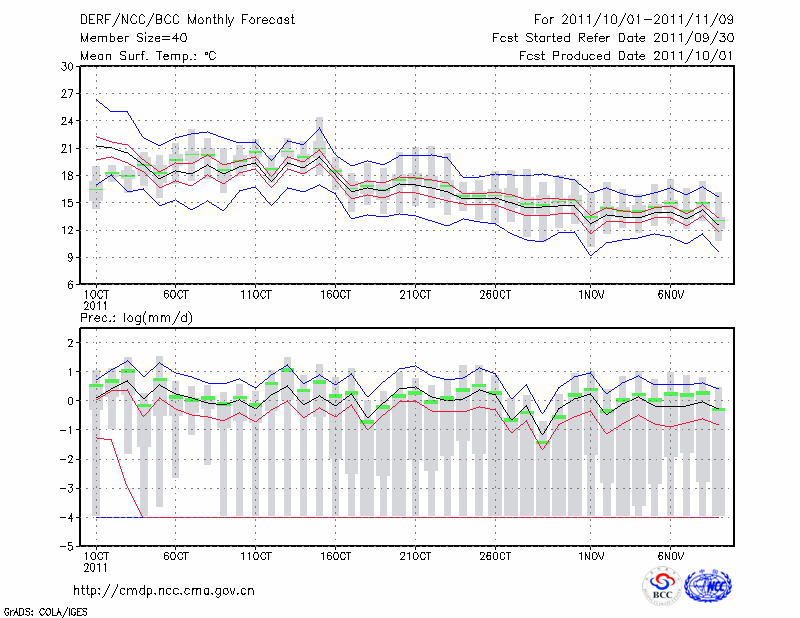 汉 口 (LAT:30.62 LON:114.13) 2011-10-01        预测