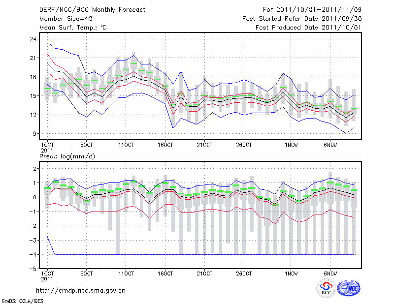 酉 阳 (LAT:28.83 LON:108.77) 2011-10-01        预测