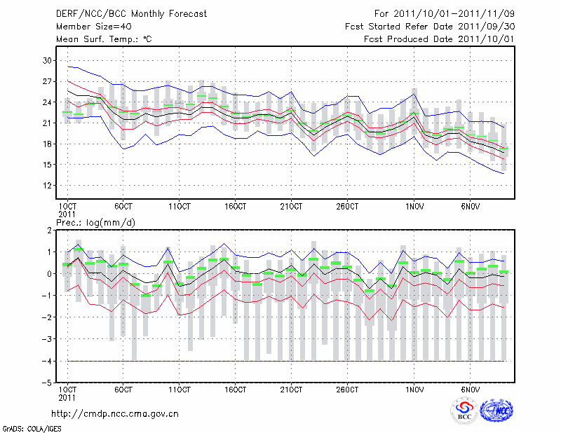 赣 州 (LAT:25.85 LON:114.95) 2011-10-01        预测