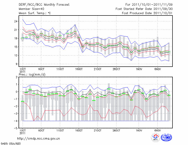 南 京 (LAT:32.00 LON:118.80) 2011-10-01        预测