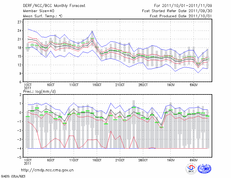 合 肥 (LAT:31.87 LON:117.23) 2011-10-01        预测