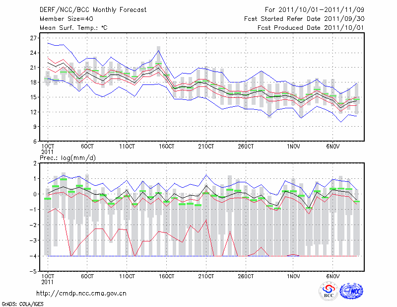 安 庆 (LAT:30.53 LON:117.05) 2011-10-01        预测