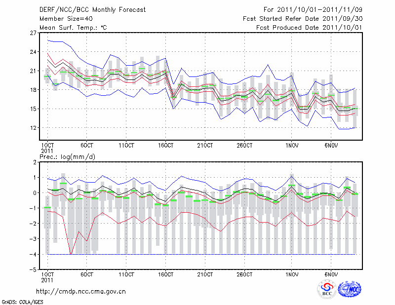 杭 州 (LAT:30.23 LON:120.17) 2011-10-01        预测