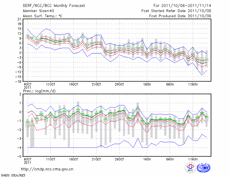 鸡 西 (LAT:45.28 LON:130.95) 2011-10-06        预测