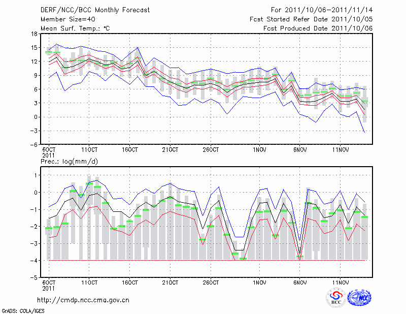 银 川 (LAT:38.48 LON:106.22) 2011-10-06        预测
