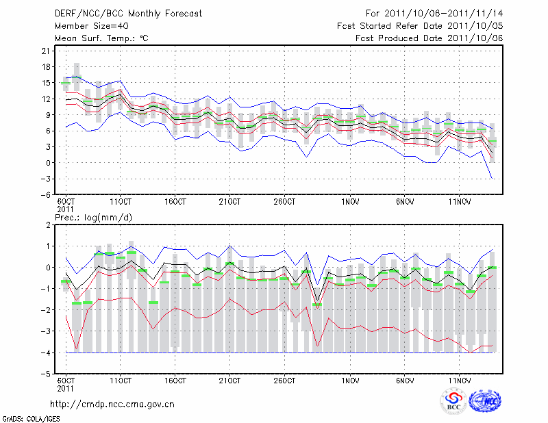 西 峰 镇 (LAT:35.73 LON:107.63) 2011-10-06        预测