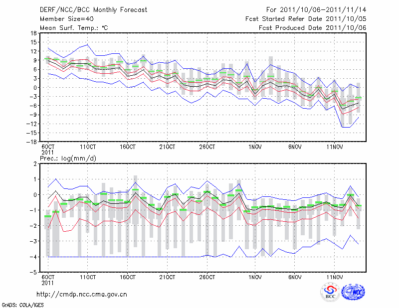牡 丹 江 (LAT:44.57 LON:129.60) 2011-10-06        预测