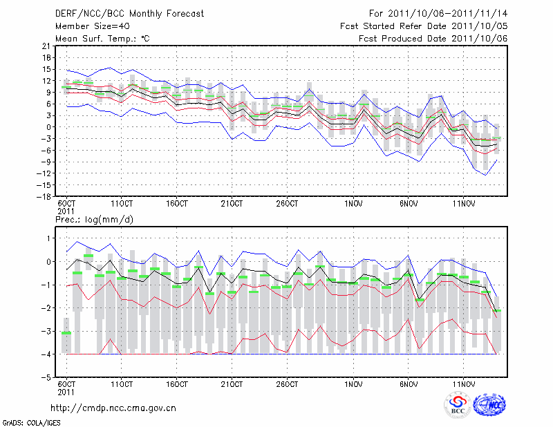 长 春 (LAT:43.90 LON:125.22) 2011-10-06        预测