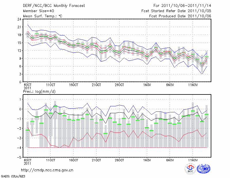 潍 坊 (LAT:36.70 LON:119.08) 2011-10-06        预测