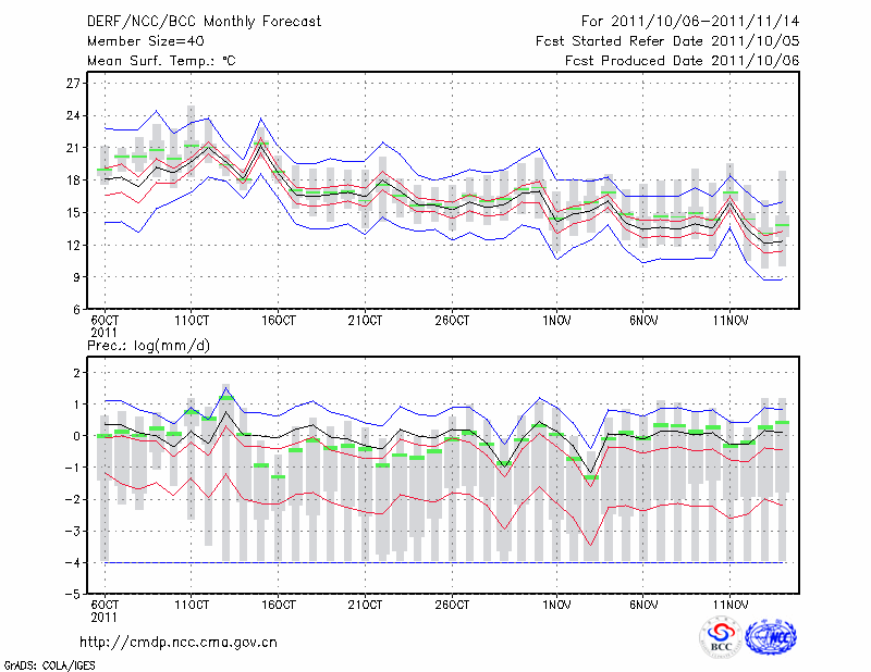 岳 阳 (LAT:29.38 LON:113.08) 2011-10-06        预测