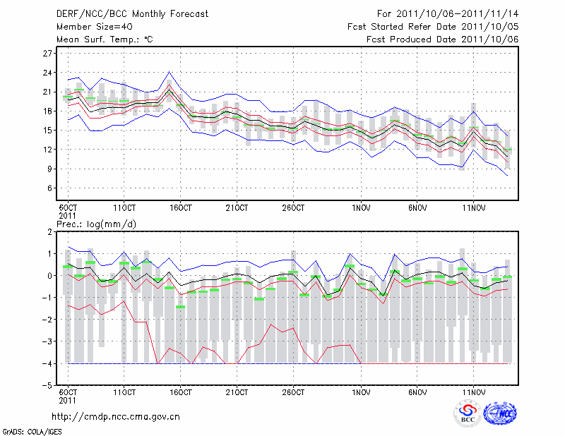 安 庆 (LAT:30.53 LON:117.05) 2011-10-06        预测