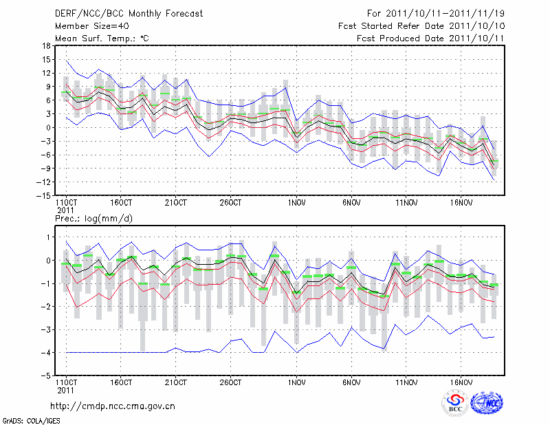 鸡 西 (LAT:45.28 LON:130.95) 2011-10-11        预测