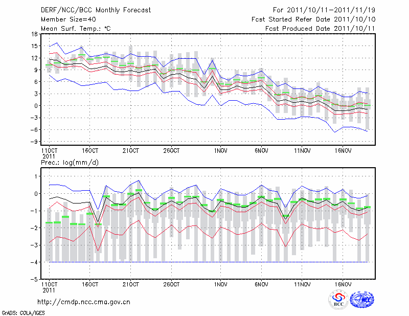 乌 苏 (LAT:44.43 LON:84.66) 2011-10-11        预测