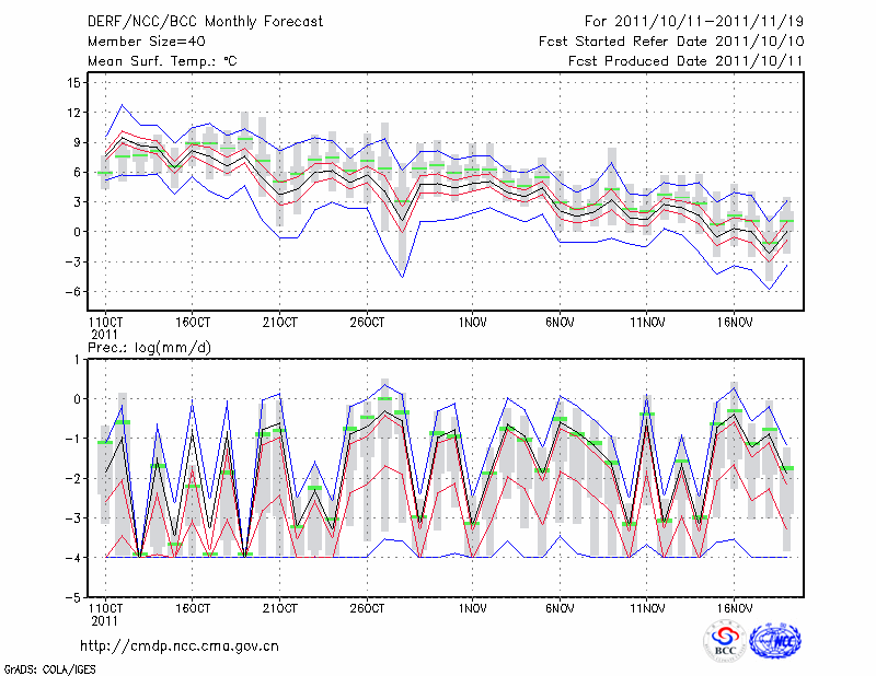 酒 泉 (LAT:39.77 LON:98.48) 2011-10-11        预测