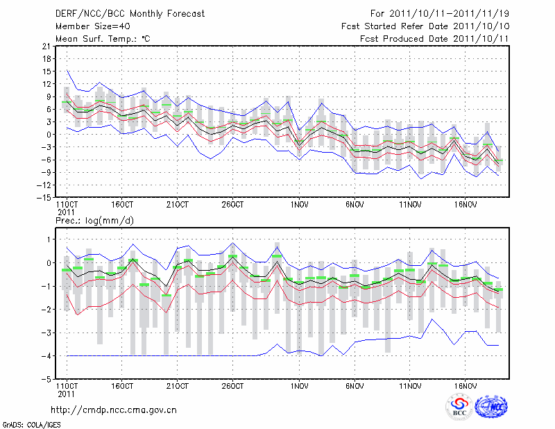 牡 丹 江 (LAT:44.57 LON:129.60) 2011-10-11        预测