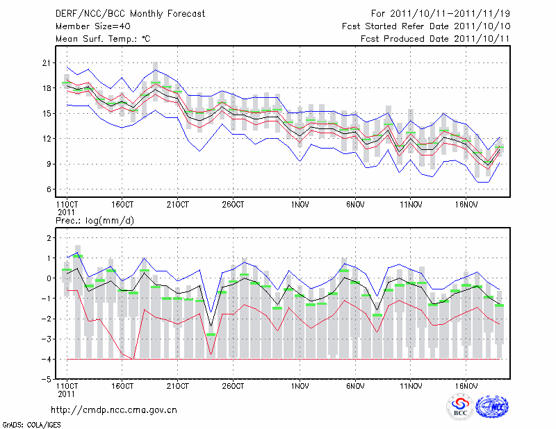 青 岛 (LAT:36.07 LON:120.33) 2011-10-11        预测