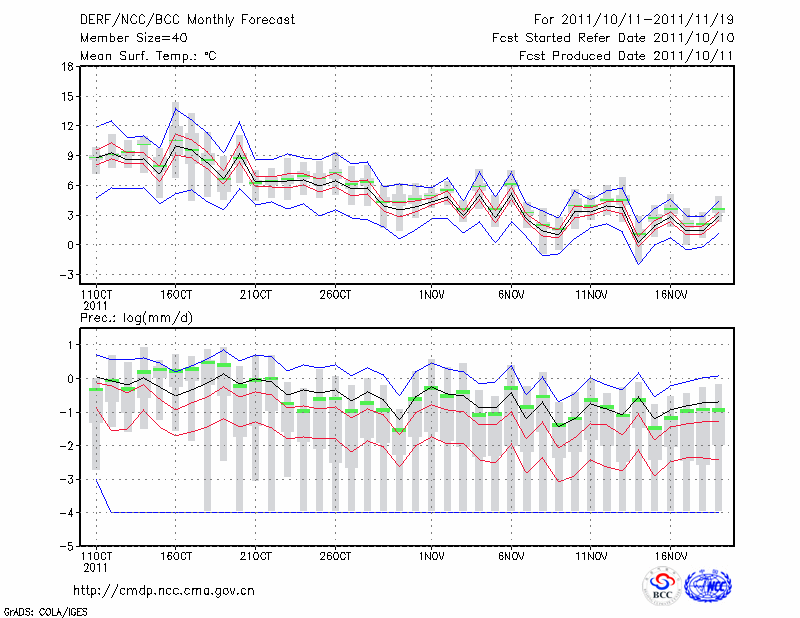 甘 孜 (LAT:31.62 LON:100.00) 2011-10-11        预测