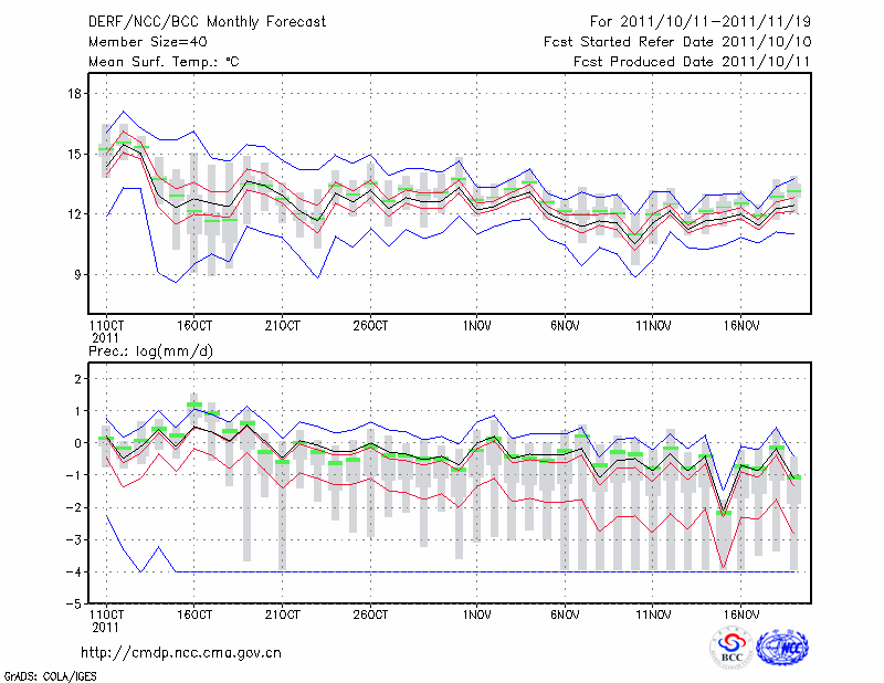 丽 江 (LAT:26.83 LON:100.47) 2011-10-11        预测