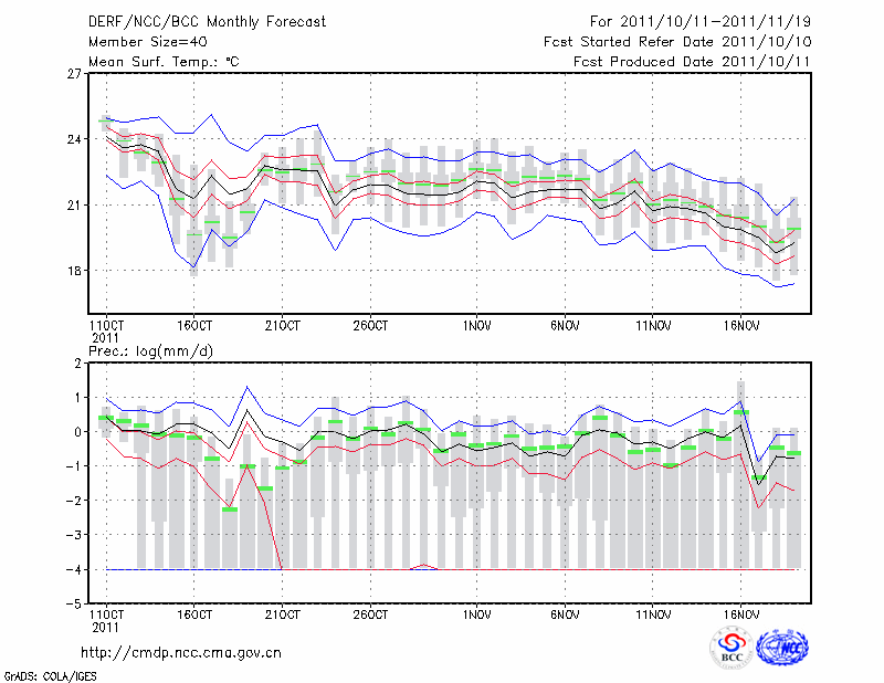 景 洪 (LAT:22.02 LON:100.80) 2011-10-11        预测