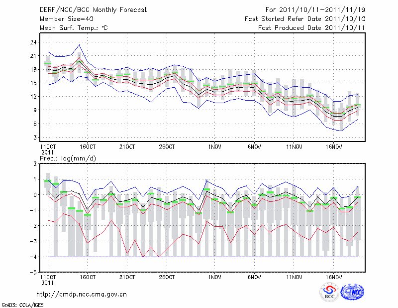 南 京 (LAT:32.00 LON:118.80) 2011-10-11        预测