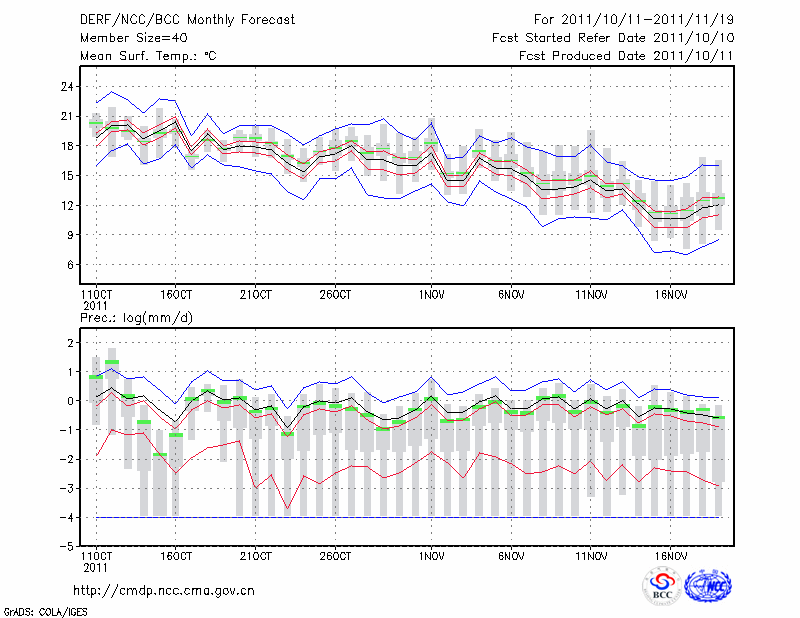 杭 州 (LAT:30.23 LON:120.17) 2011-10-11        预测