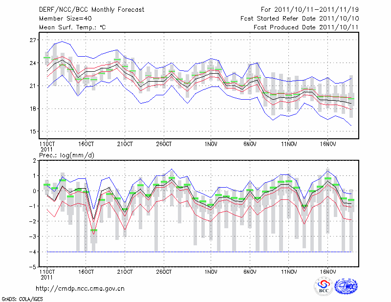 福 州 (LAT:26.08 LON:119.28) 2011-10-11        预测
