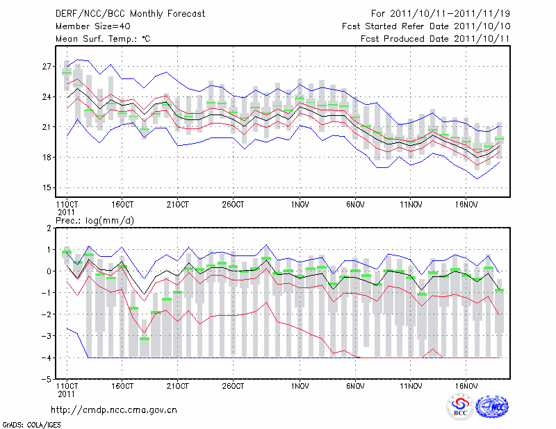百 色 (LAT:23.90 LON:106.60) 2011-10-11        预测