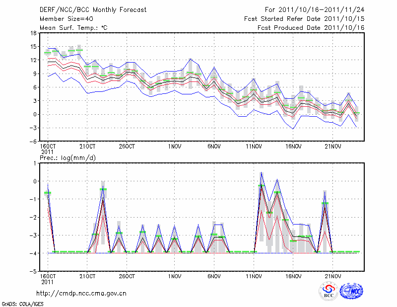 若 羌 (LAT:39.03 LON:88.17) 2011-10-16        预测