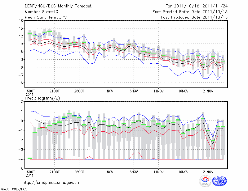 延 安 (LAT:36.60 LON:109.50) 2011-10-16        预测