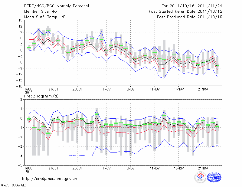 牡 丹 江 (LAT:44.57 LON:129.60) 2011-10-16        预测