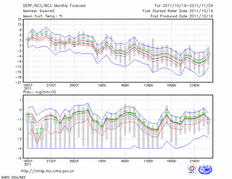 锡林浩特 (LAT:43.95 LON:116.07) 2011-10-16        预测