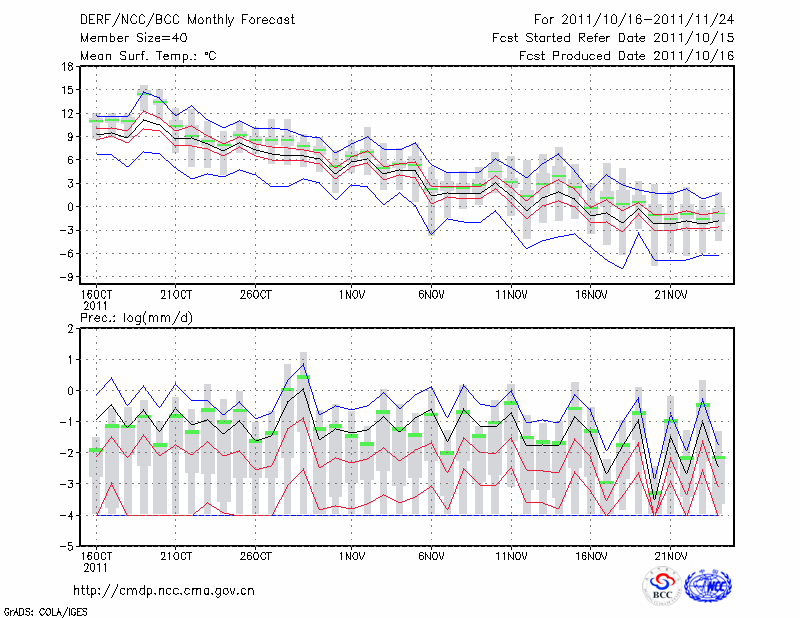 张 家 口 (LAT:40.78 LON:114.88) 2011-10-16        预测