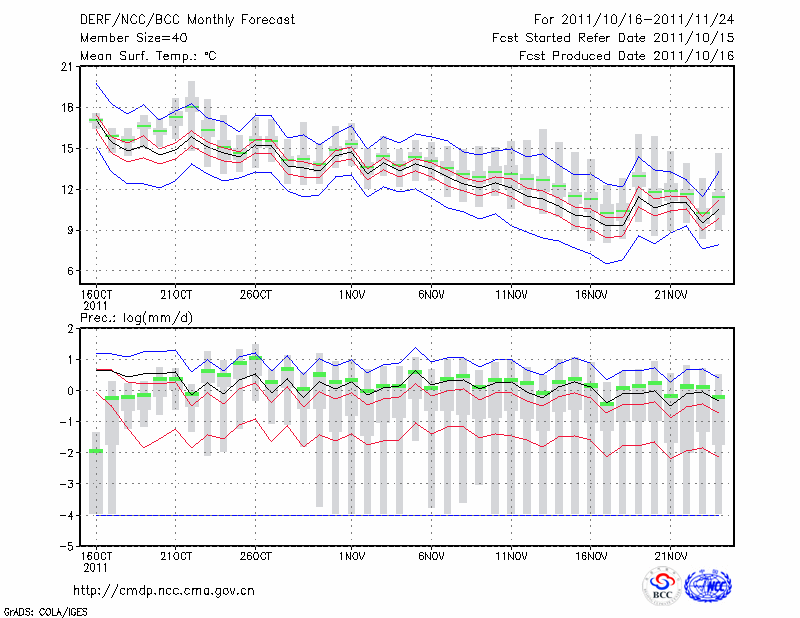 恩 施 (LAT:30.28 LON:109.47) 2011-10-16        预测