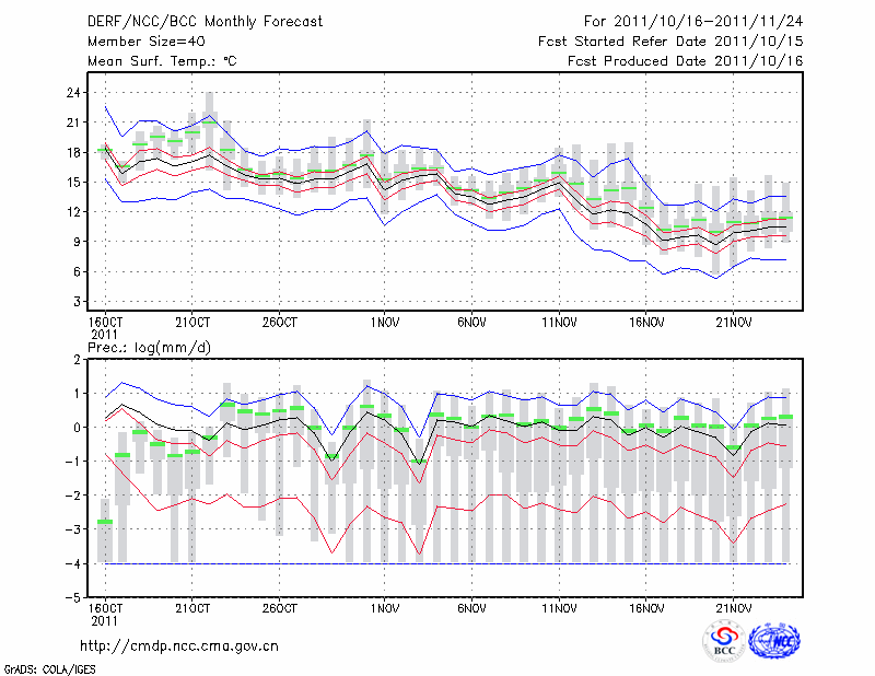 岳 阳 (LAT:29.38 LON:113.08) 2011-10-16        预测