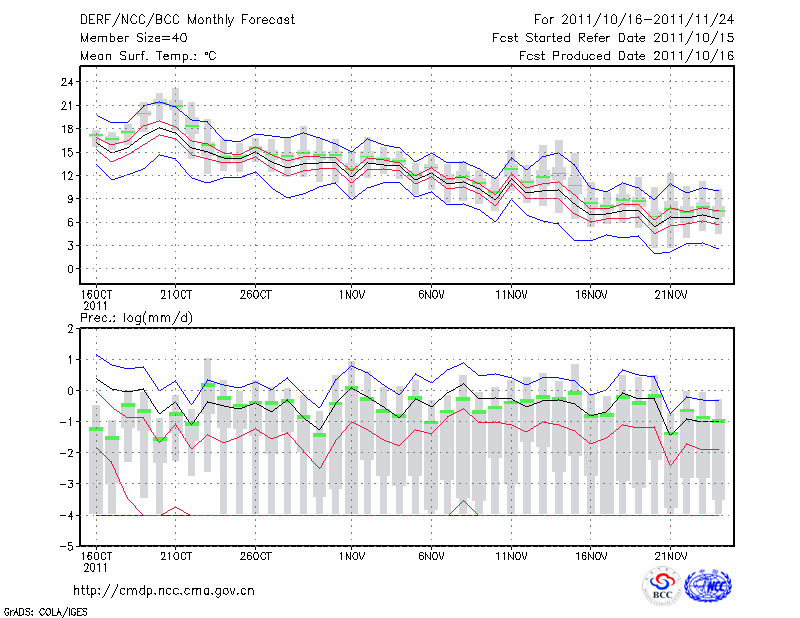 阜 阳 (LAT:32.93 LON:115.83) 2011-10-16        预测