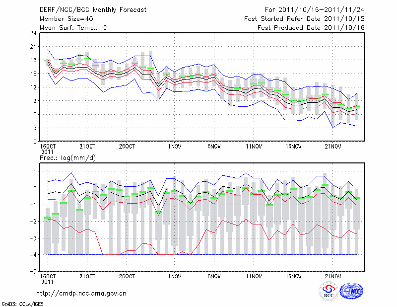 南 京 (LAT:32.00 LON:118.80) 2011-10-16        预测