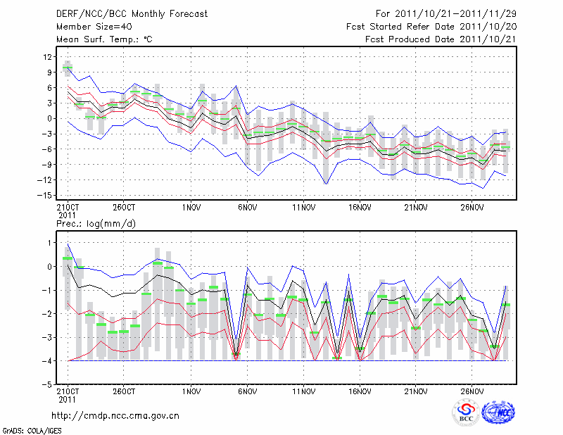 乌兰浩特 (LAT:46.08 LON:122.05) 2011-10-21        预测