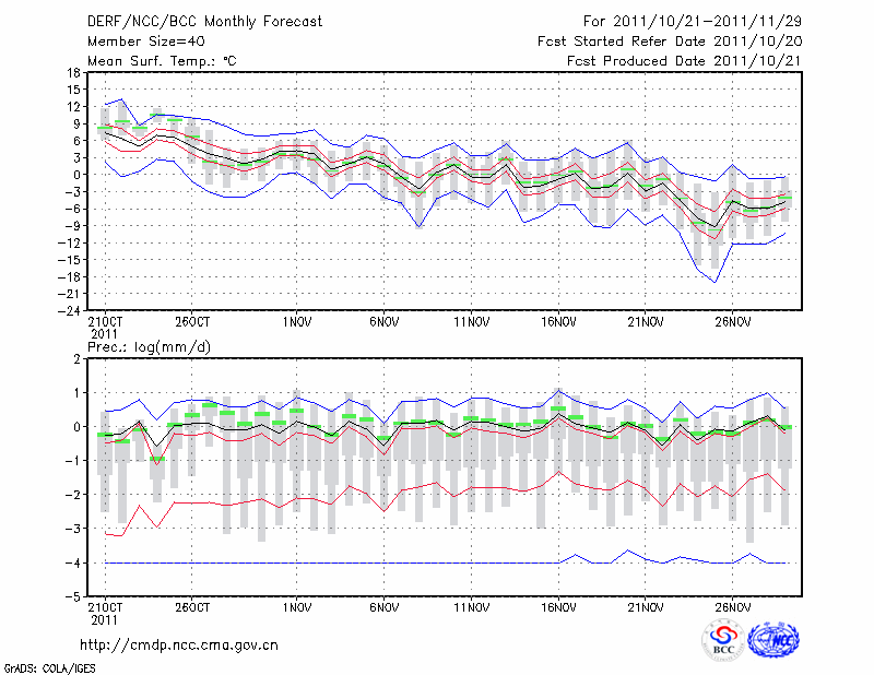 塔 城 (LAT:46.73 LON:83.00) 2011-10-21        预测