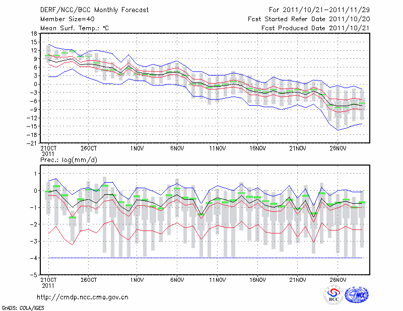 乌 苏 (LAT:44.43 LON:84.66) 2011-10-21        预测
