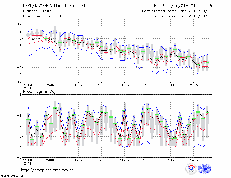 酒 泉 (LAT:39.77 LON:98.48) 2011-10-21        预测