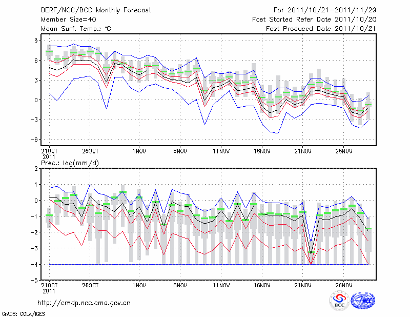 临 夏 (LAT:35.58 LON:103.18) 2011-10-21        预测