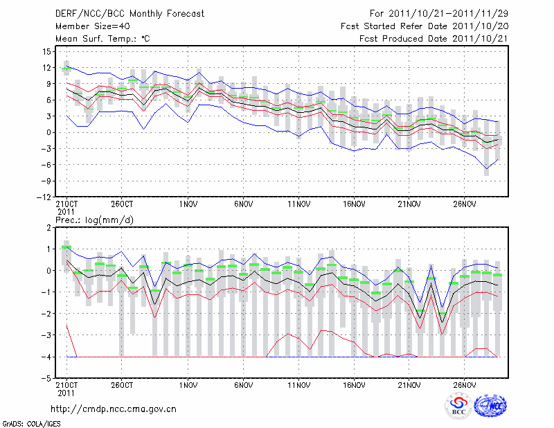 西 峰 镇 (LAT:35.73 LON:107.63) 2011-10-21        预测