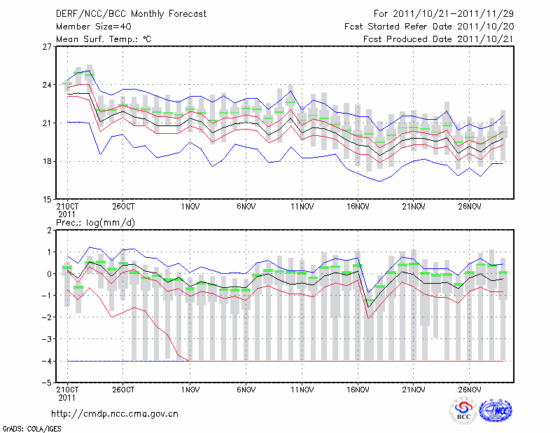 景 洪 (LAT:22.02 LON:100.80) 2011-10-21        预测