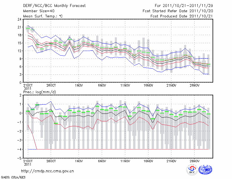 钟 祥 (LAT:31.17 LON:112.57) 2011-10-21        预测