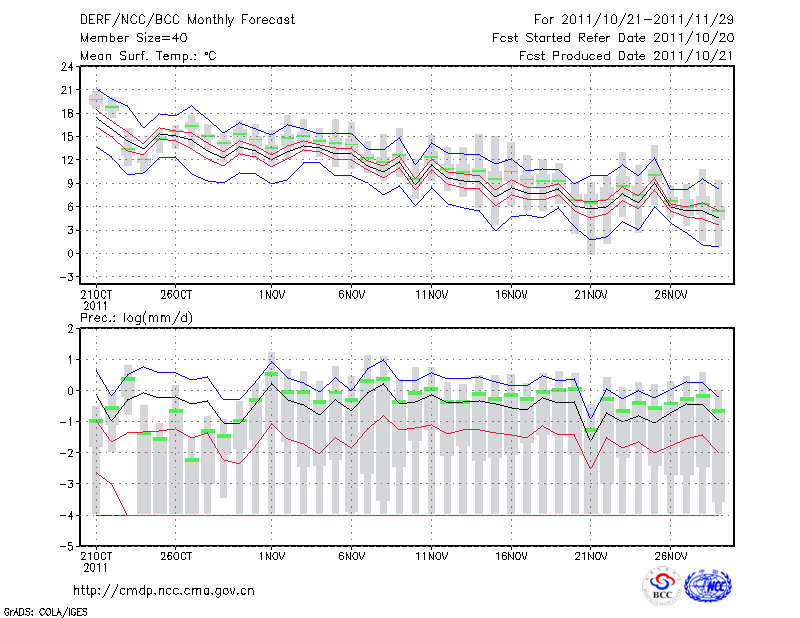 阜 阳 (LAT:32.93 LON:115.83) 2011-10-21        预测