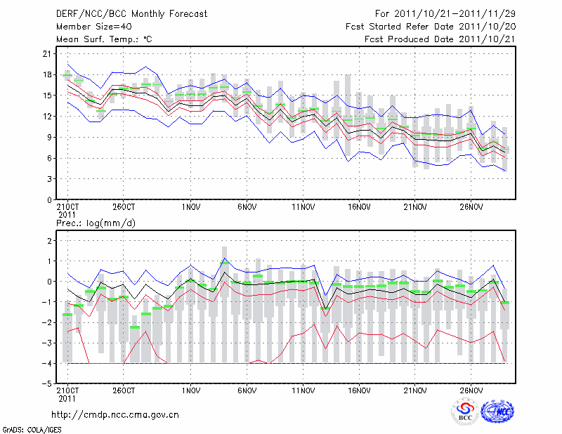 东 台 (LAT:32.87 LON:120.32) 2011-10-21        预测