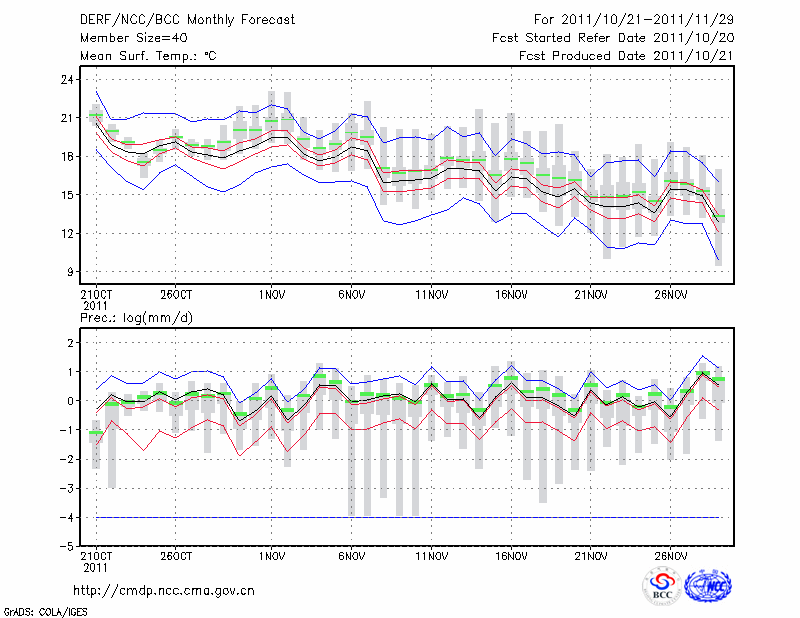 温 州 (LAT:28.02 LON:120.67) 2011-10-21        预测