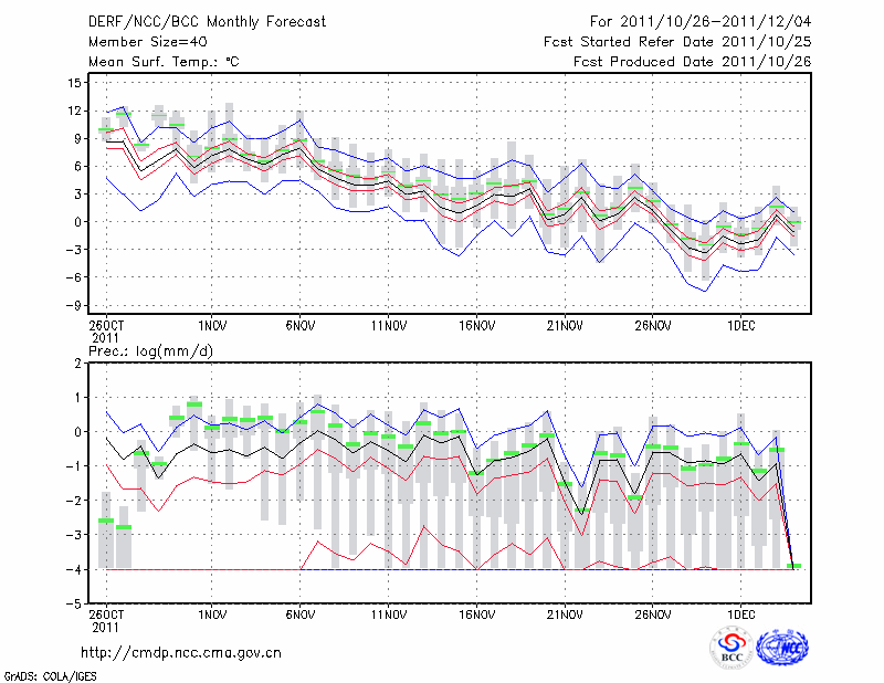 延 安 (LAT:36.60 LON:109.50) 2011-10-26        预测